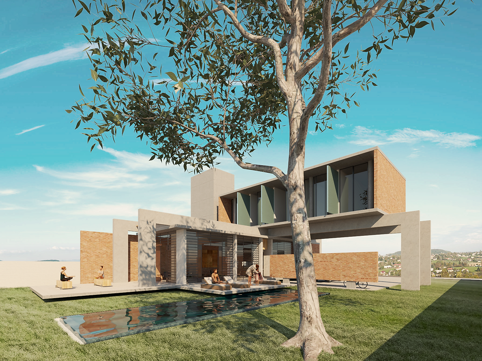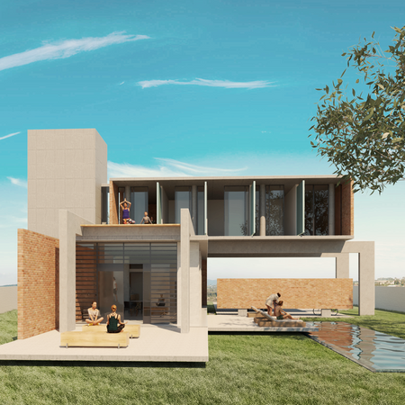 Localizada em um condomínio na região de Águas de São Pedro, assentada sobre um terreno próximo a um grande haras da região e com vista para o vale onde o ribeirão Araquá deságua no rio Piracicaba. A casa ASP foi projetada de forma muito pragmática, com modulação rígida e materiais crus, autênticos e à mostra. Priorizando a vista ao fundo do lote, implantamos todas as áreas sociais e de lazer neste setor, integrando-as em uma implantação linear e paralela. acrescentando privacidade e aproveitando a insolação durante todo o dia. a separação entre público e privado é feita por uma empena horizontal, flutuando ao fim da garagem, dando privacidade à área da piscina, mas sem se tornar uma barreira abrupta e grosseira. O acesso à área privativa, transversal ao bloco inferior, formada por 4 suítes e sala intima se dá pela escada em concreto aparente contida num grande bloco vertical que marca o eixo de flexão entre os dois pavimentos, esta área também usufrui da vista e insolação da face nordeste. Optamos pelo uso de materiais brutos como estrutura em concreto aparente, vedações em tijolos maciços e esquadrias em aço com vitrôs basculantes para obter uma linguagem simples, mas de execução criteriosa, discreta a ainda assim acolhedora e arejada.
